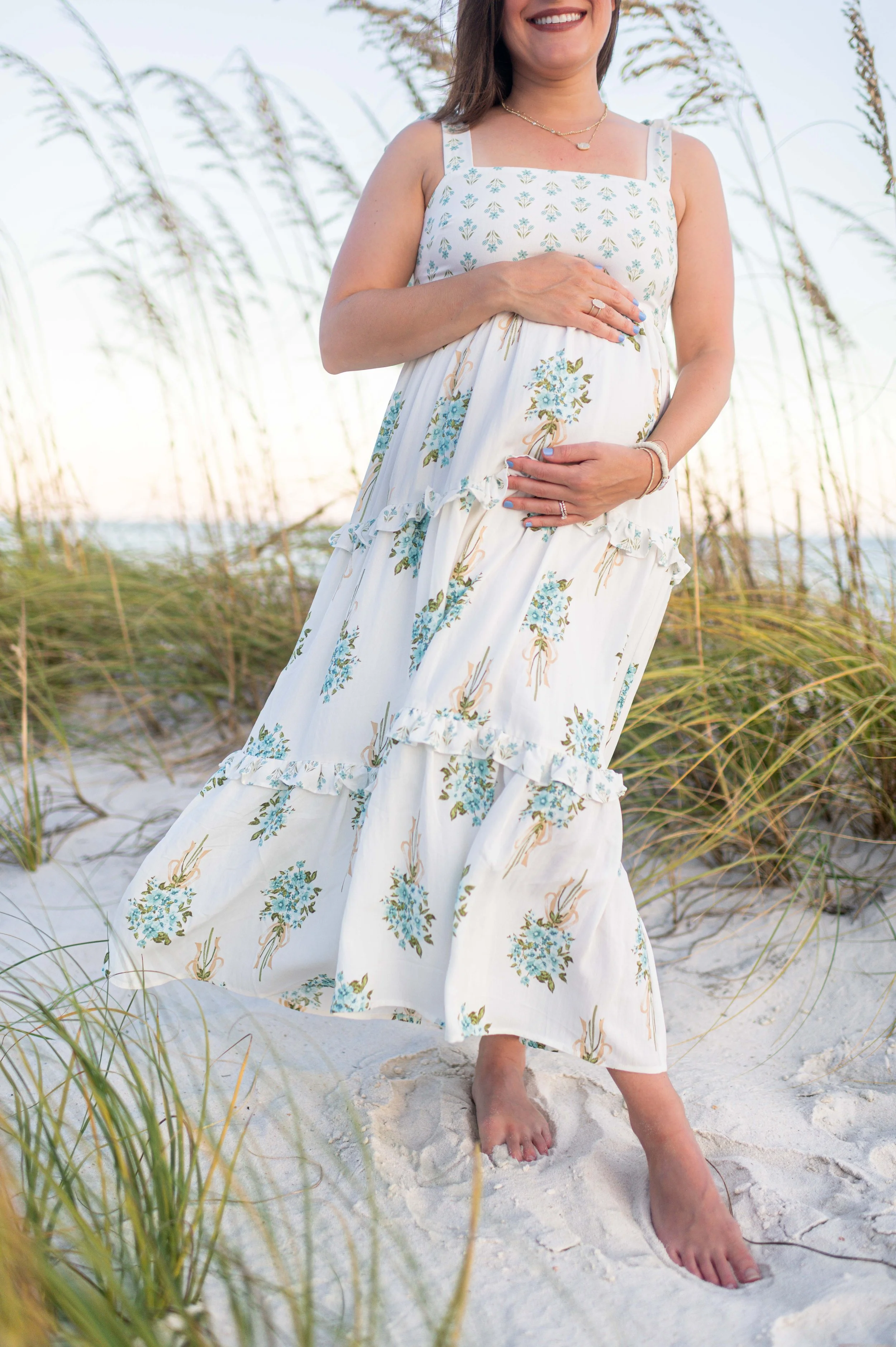 Pregnant woman with hands on belly in Pensacola, Florida.